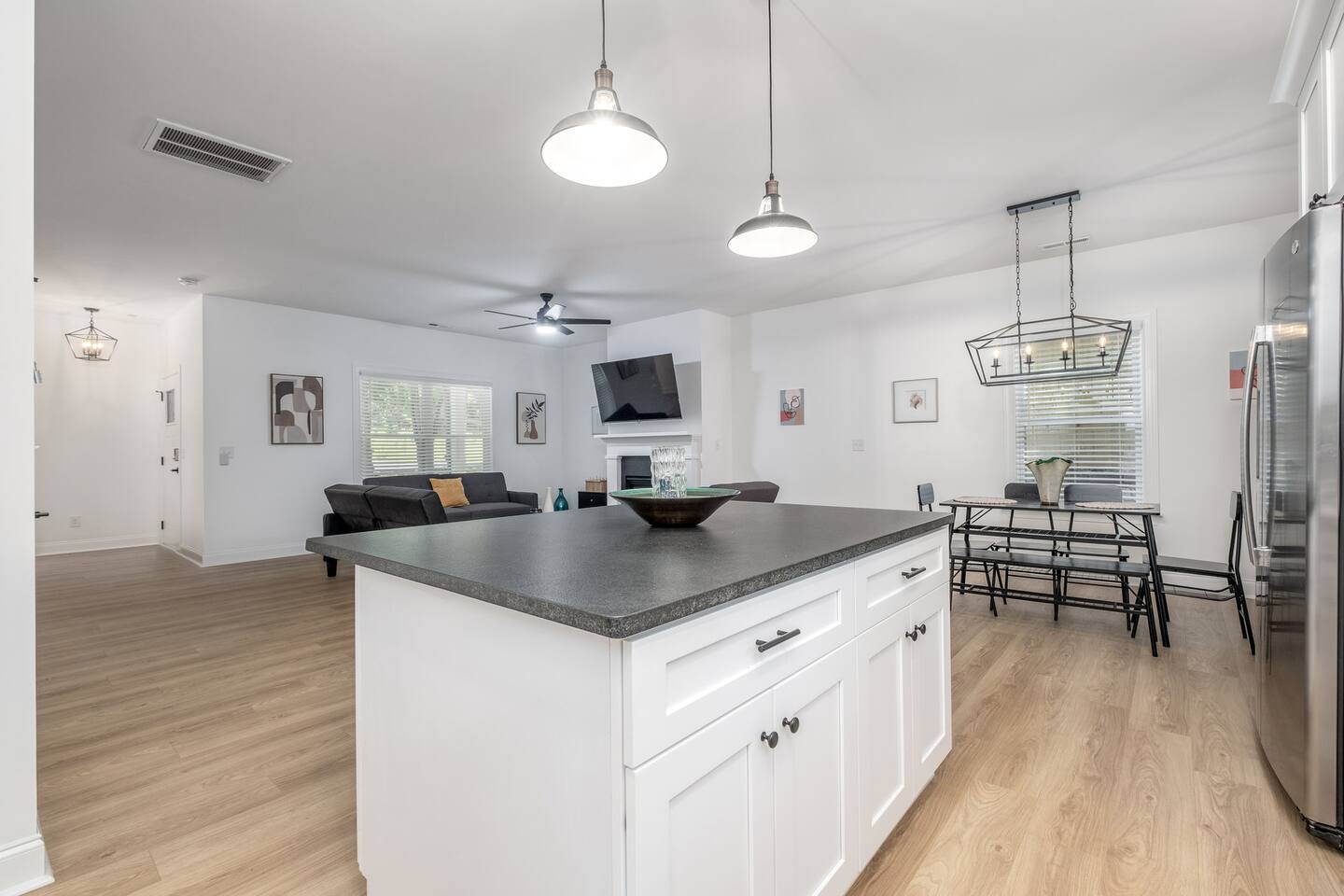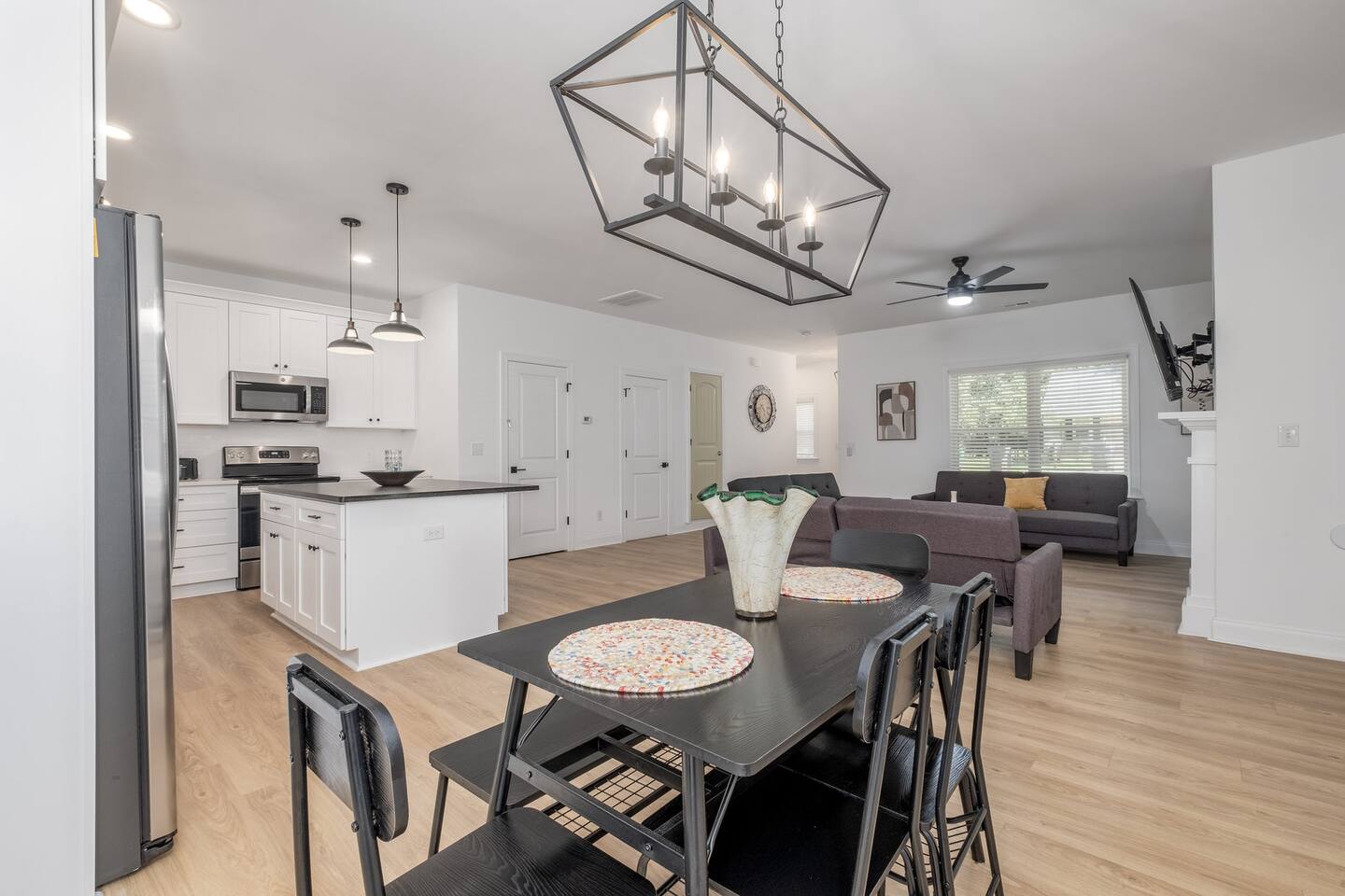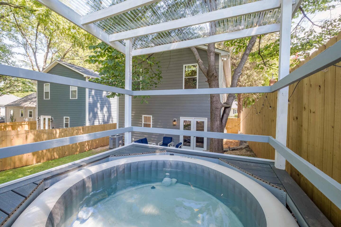 Spacious new construction home with an open floor plan perfect for entertaining, come check out everything this home has to offer: ☞ Pet friendly* ☞ Fenced backyard ☞ Hot Tub (available all year round) ☞ Outdoor Grill ☞ Master suite w/ king bed + bathroom ☞ Fully equipped + stocked kitchen ☞ Parking → driveway (4 cars) ☞ 4 Smart TV’s ☞ 800 Mbps wifi 10 mins → Uptown (dining, nightlife, sporting events) 15 mins → Charlotte Douglas International Airport ✈ We look forward to hosting you!
